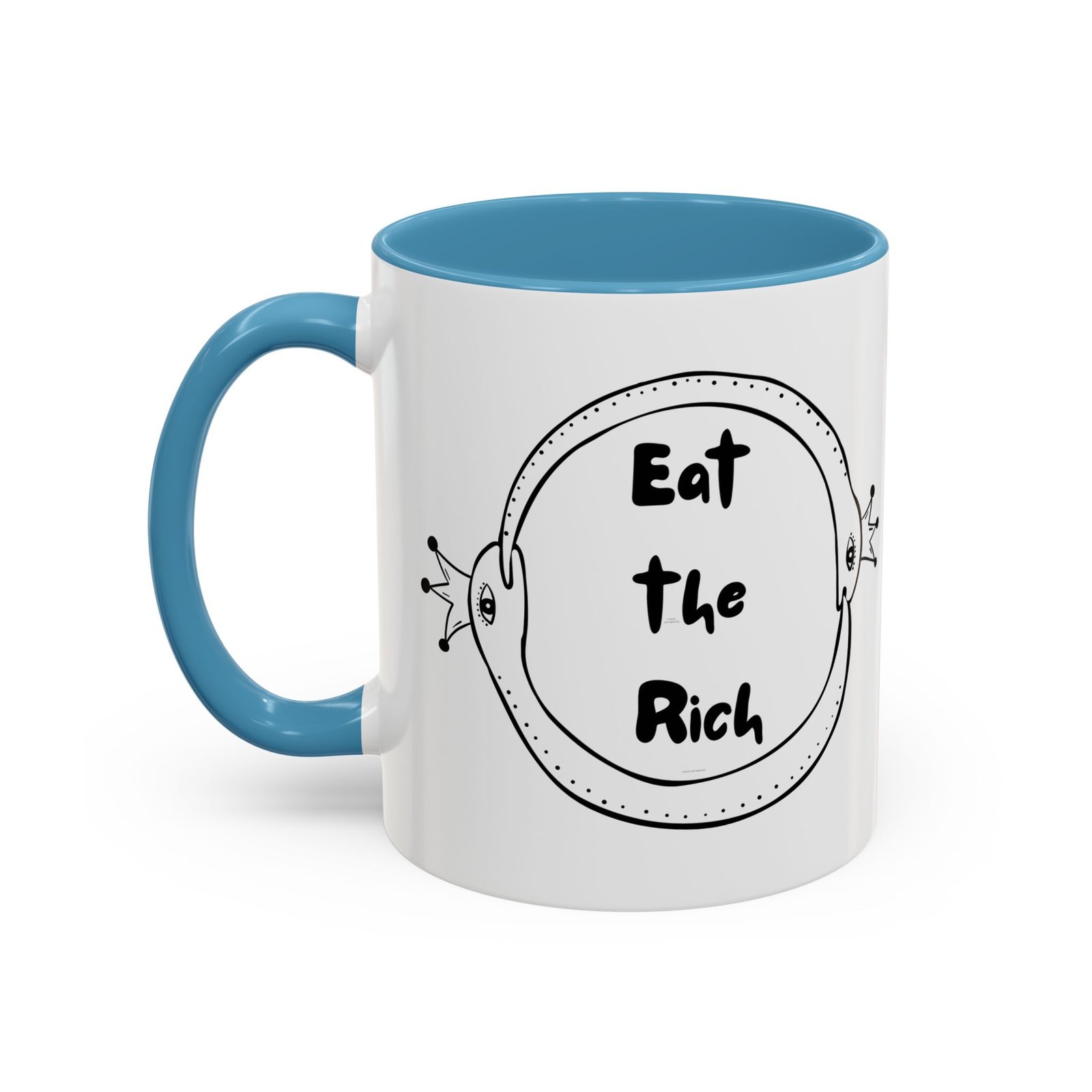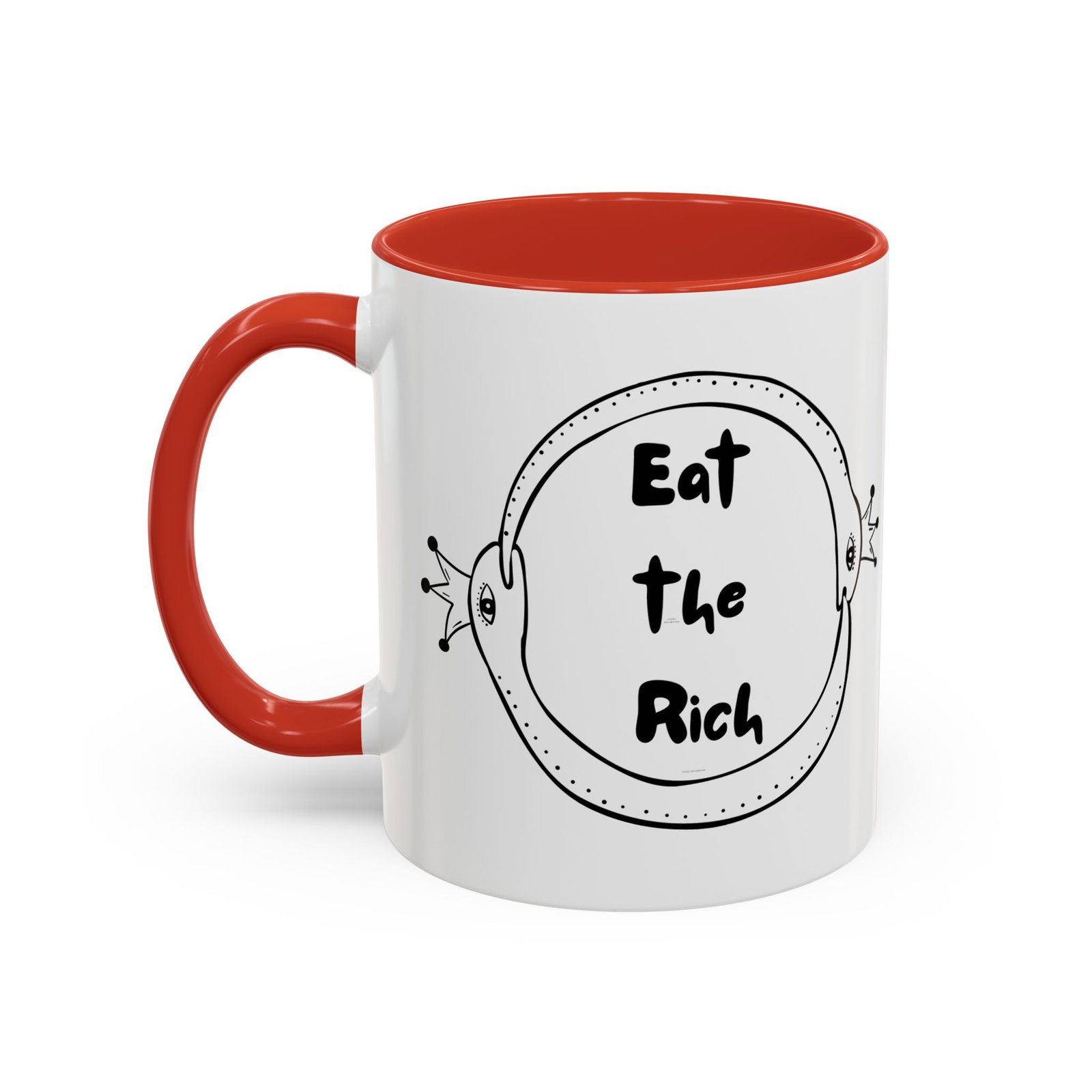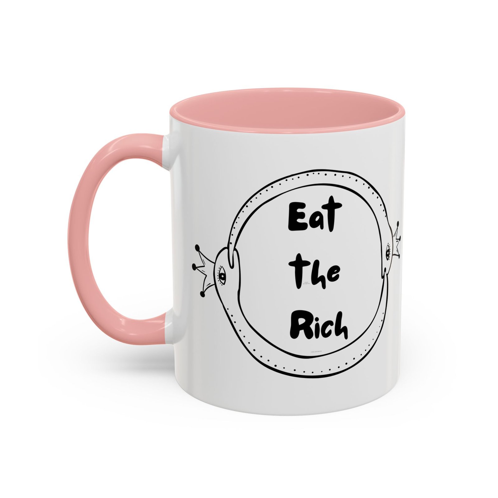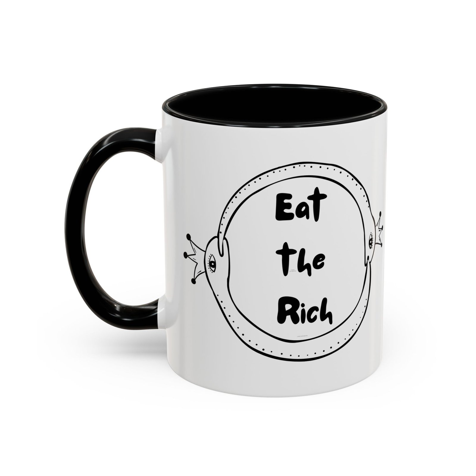 This Eat the Rich mug features two polka-dotted snakes wearing royal crowns, wrapped in an ouroboros of survival and snark. It’s the perfect middle finger to performative progress and trickle-down nonsense.