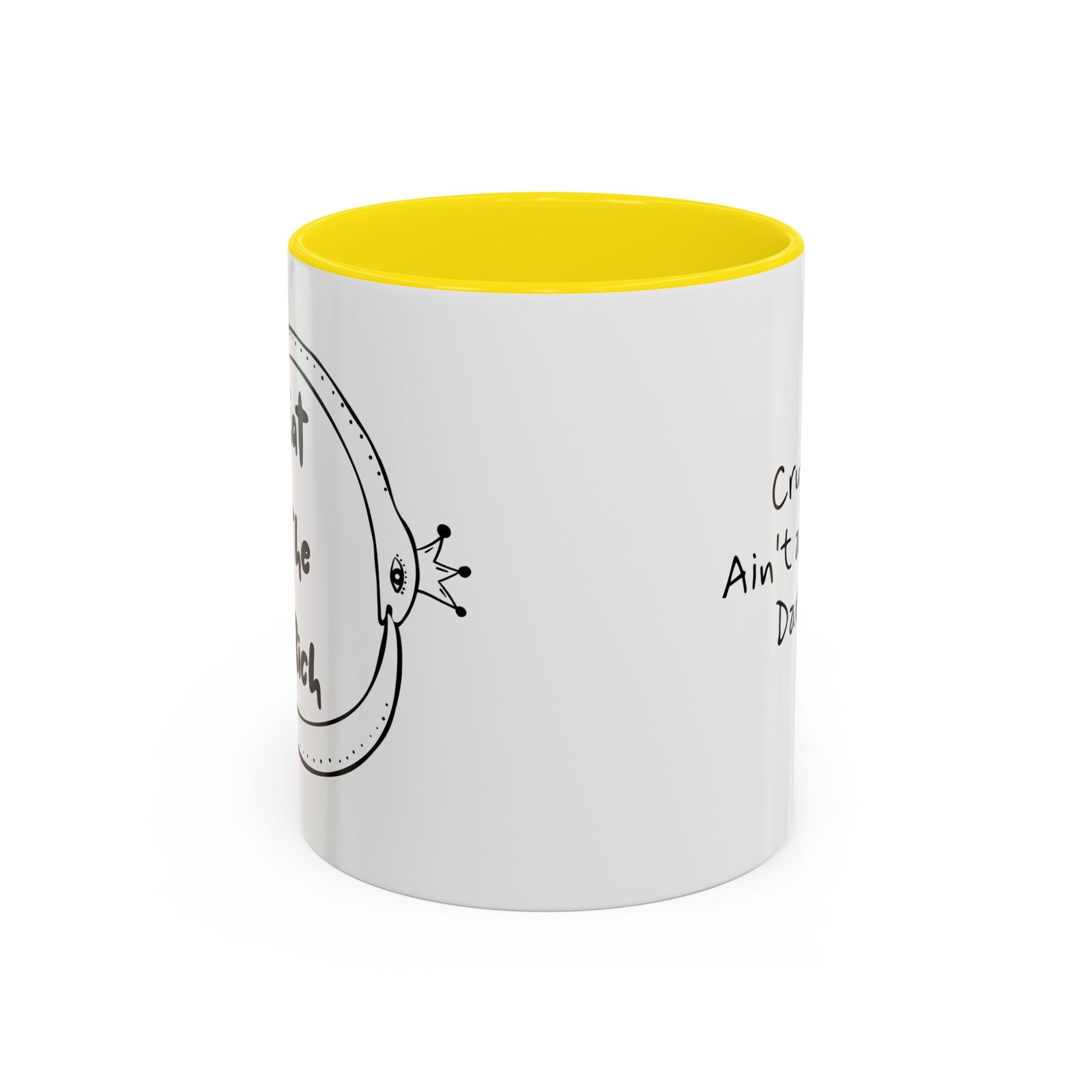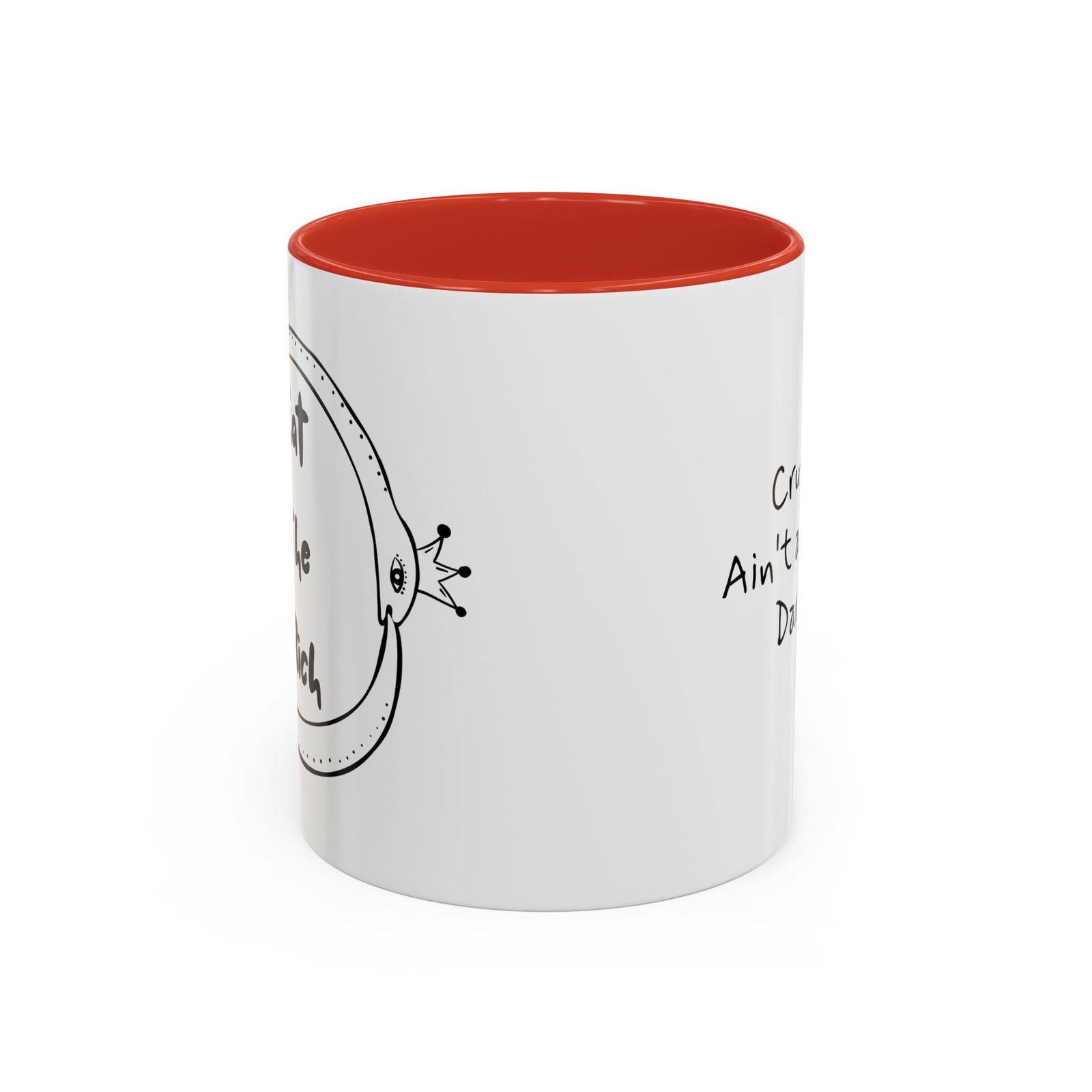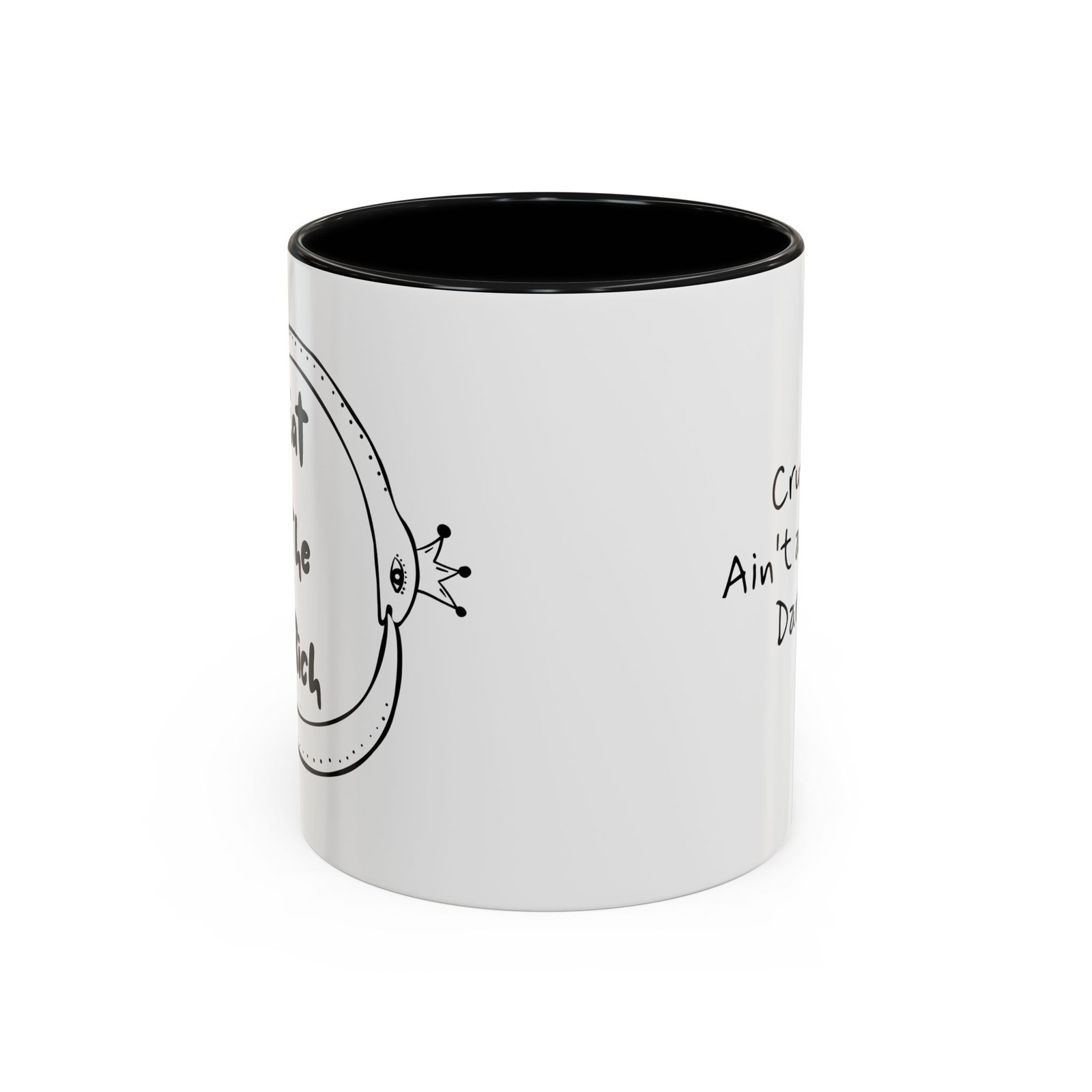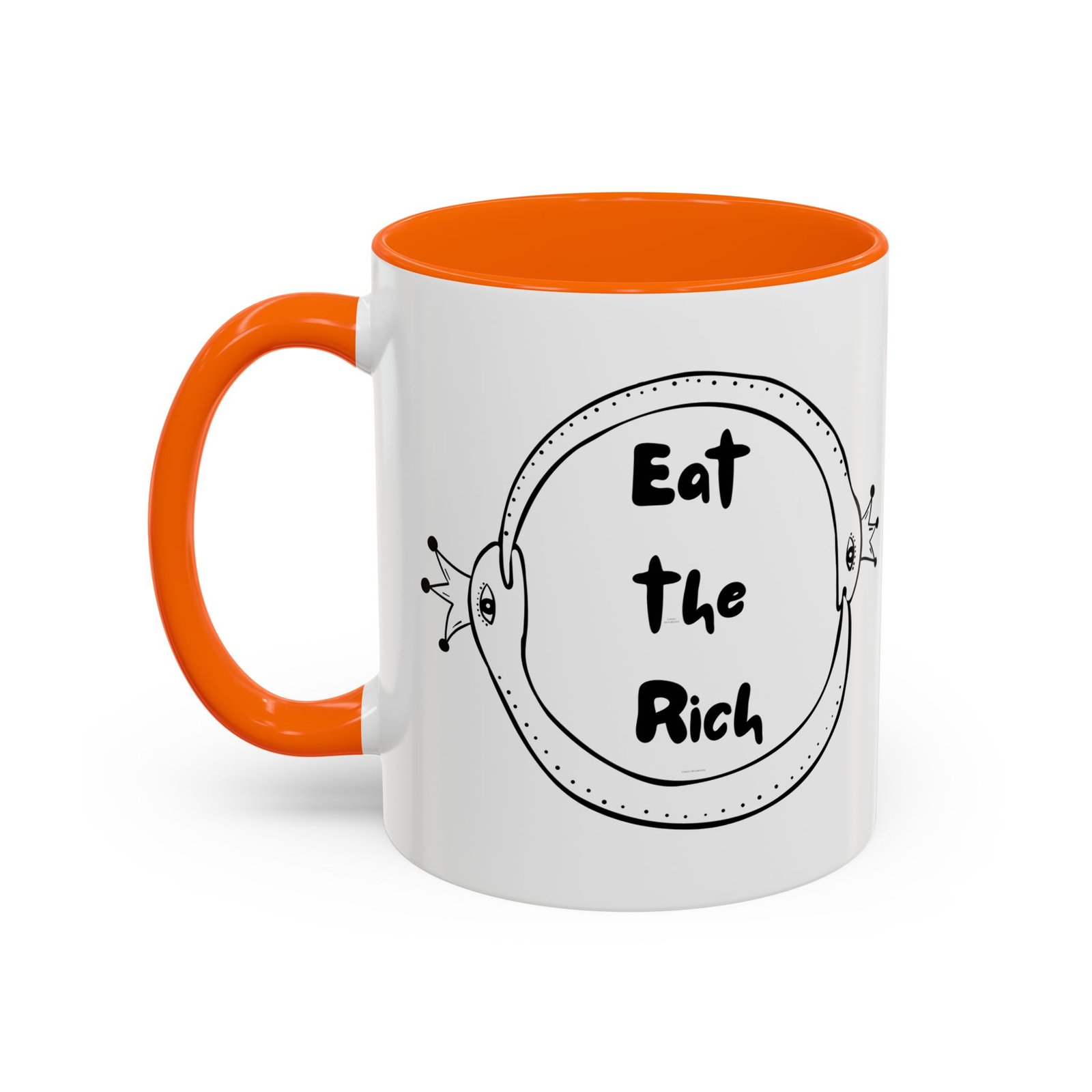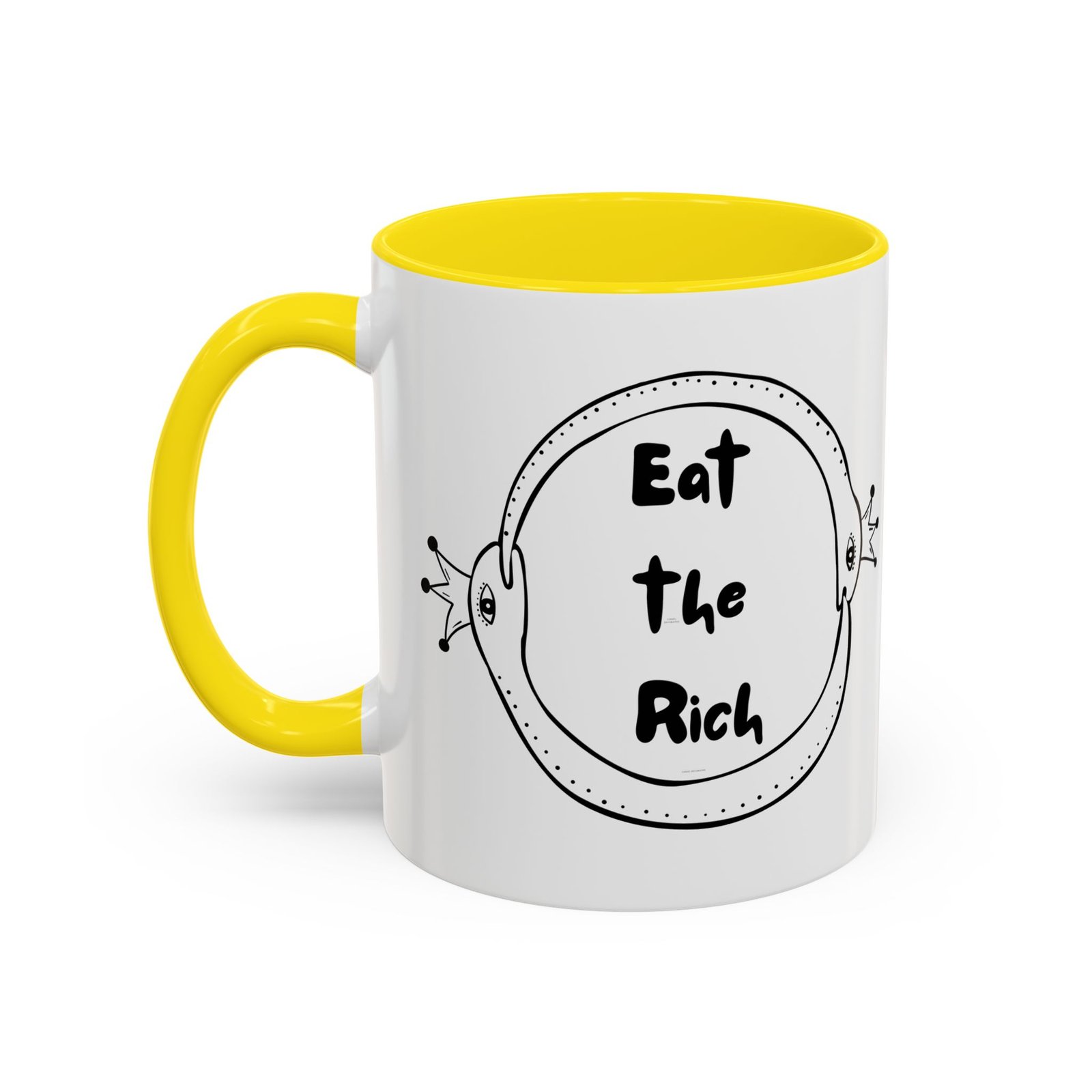 This Eat the Rich mug features two polka-dotted snakes wearing royal crowns, wrapped in an ouroboros of survival and snark. It’s the perfect middle finger to performative progress and trickle-down nonsense.